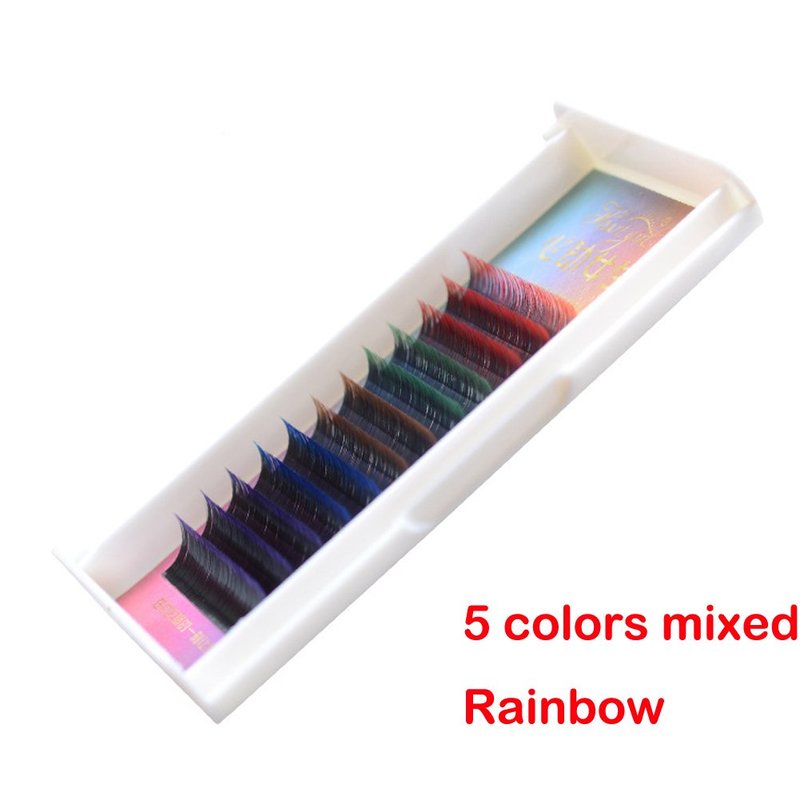 Scala 5 Colors Mix Gradient Rainbow Colorful 12 Rows/tray C Curl 0.10 Flash Eyelash Extension Nature Long Gradient Mink False Individual Eye Lashes Makeup Mink Fake False Eyelashes (12mm)