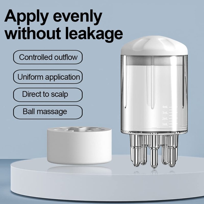 【Easy to Use】1 Lift the seal lid directly. 2 Fill the appropriate dosage into the graduated medicine bin. 3 Open the silicone base directly. 4 In the need to apply the place sliding, you can be out of the liquid. What's more, the scalp applicator comb with scale, dosage of medicine at a glance.