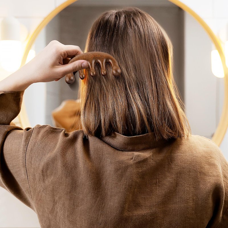 Scalp Massager Loc Comb, Sandalwood Head Massager Wide Tooth Hair Massager Scalp Comb for Hair Guasha Scraping Scalp Comb Multi-Functional Handheld Head Massage Tool for Head Neck Hands and Legs