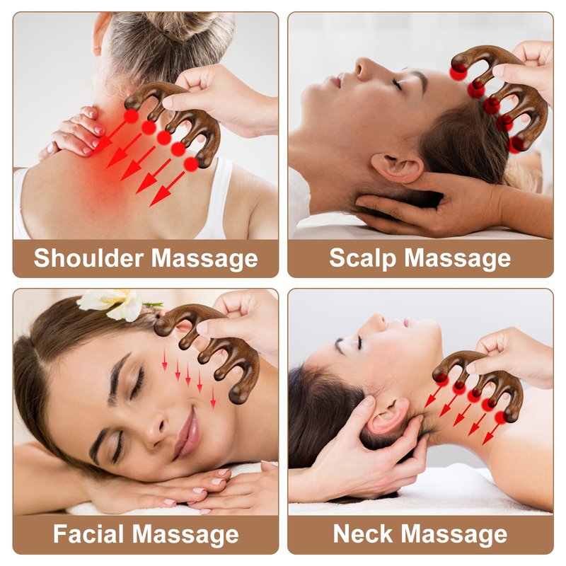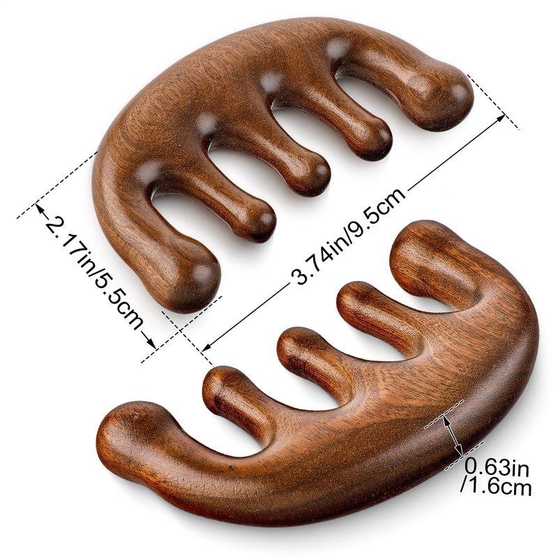 - 【Excellent Workmanship】This manual massager is made of sandalwood. The surface has been sanded and polished, making it very smooth and round, and feels good in the hand. The back of the sandalwood comb is very thick and is suitable for gua sha massage. The tooth comb of the wooden comb is ball-shaped, which can be used to massage the scalp while combing the hair.