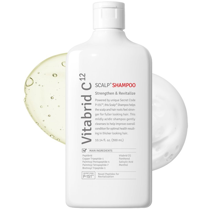 - SCALP ANTI-AGING AND HAIR LOSS RELIEF: Vitabrid C12 Scalp+ Shampoo is powered by the unique Secret Code P-151, effectively cleansing the scalp and hair while protecting against aging. It helps maintain healthy, stronger hair by utilizing collagen-boosting peptides to invigorate the scalp and promote healthy hair growth.