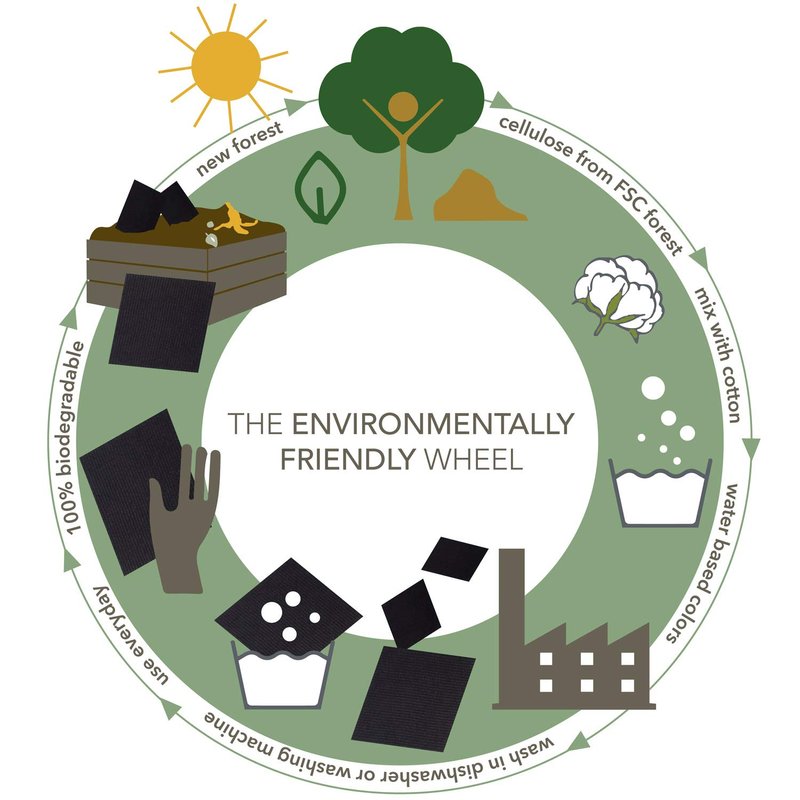 - 𝗘𝗔𝗥𝗧𝗛 – Each SCANDISH Swedish dish cloth is made of 70% Cellulose (from FCS forests) and 30% Cotton and dyed with Global Organic Textile Standard approved color. This makes our Swedish dish cloths 100% Biodegradable and Compostable.