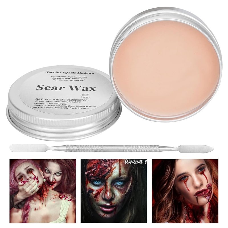 Scar Wax Kit SFX Make Up,Fake Molding Wound Skin Wax with Spatula,Body Paint Fake Nose Stage Zombie Cosplay Costume SFX Makeup,Makeup Special Effects For Halloween Festival & Party