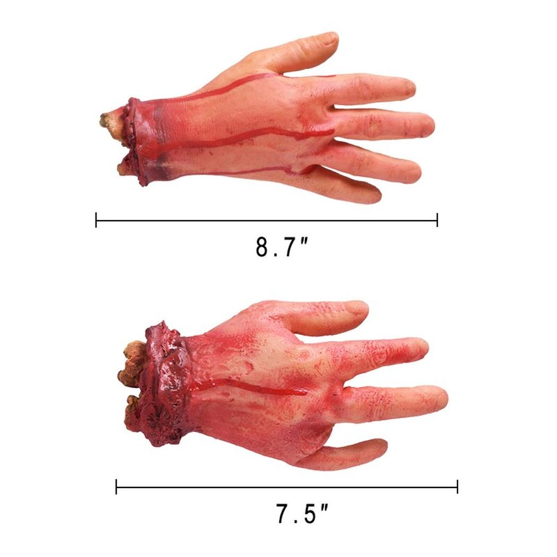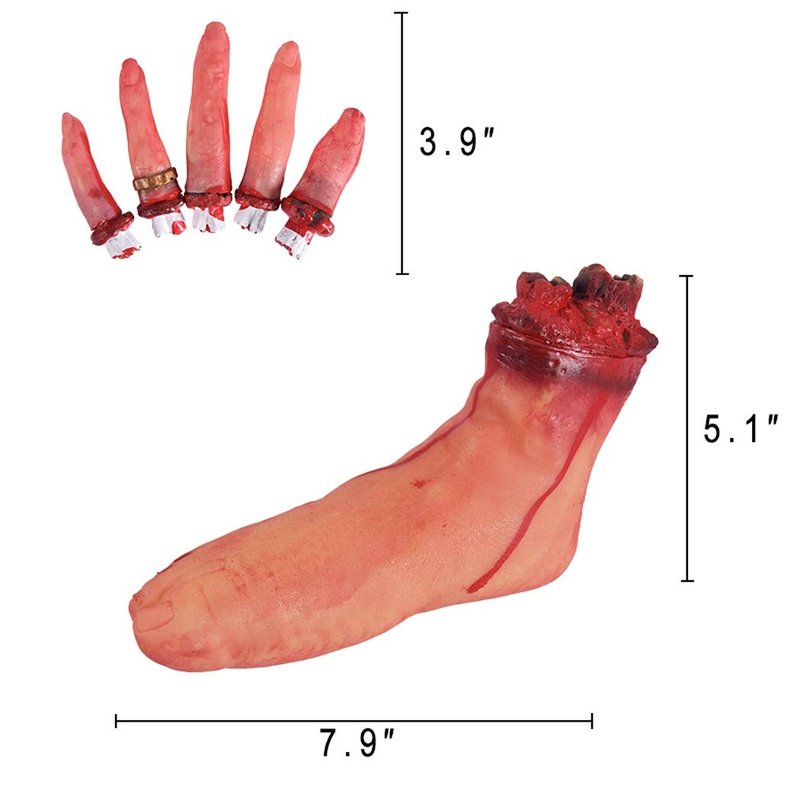 Size: Fake Hand: Length: 22.1cm / 8.7inch, Width: Fake Hand(missing one finger): Fake Foot: Length: 20cm / 7.9inch, Height: 13cm / 5.1inch Fake Fingers: Length: 10cm / 3.93inch