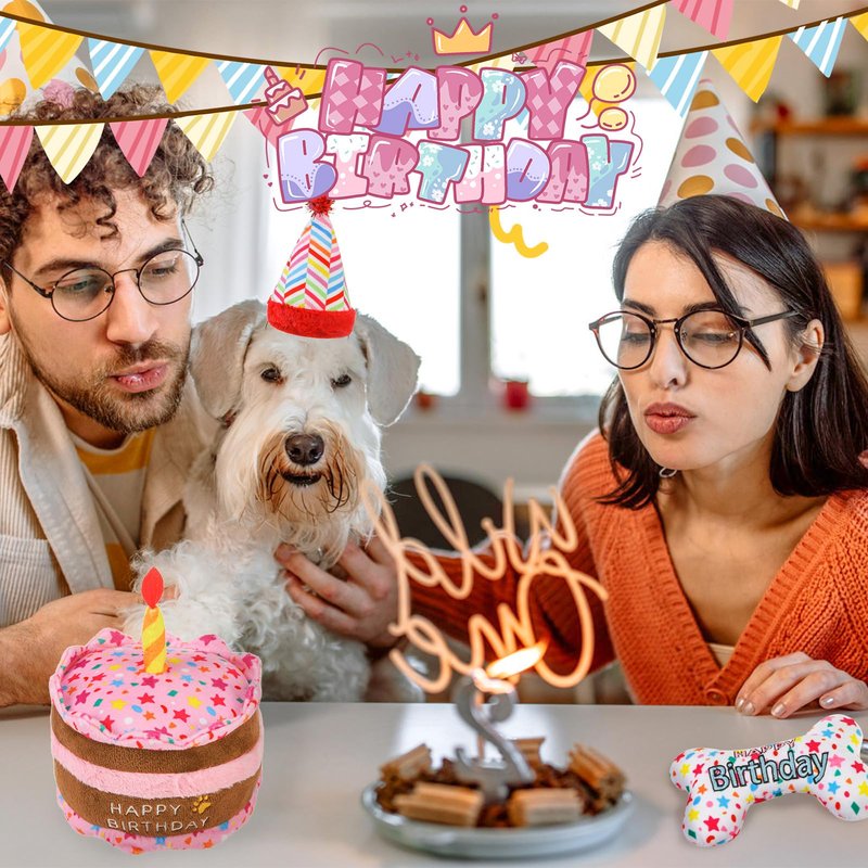 - BIRTHDAY THEME: This set of toys uses birthday elements and bright colors to create a strong birthday atmosphere, which is an excellent birthday gift for furry friends. Make a memorable birthday party for your dog with this unique pet birthday gift