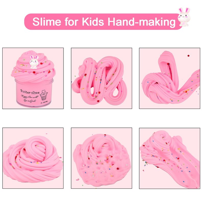 - 【Good Texture】 The buttery slime kit is with amazing texture,non-sticky, good scented, mess-free, super soft, friendly material. It is suitable for any different kinds age of people