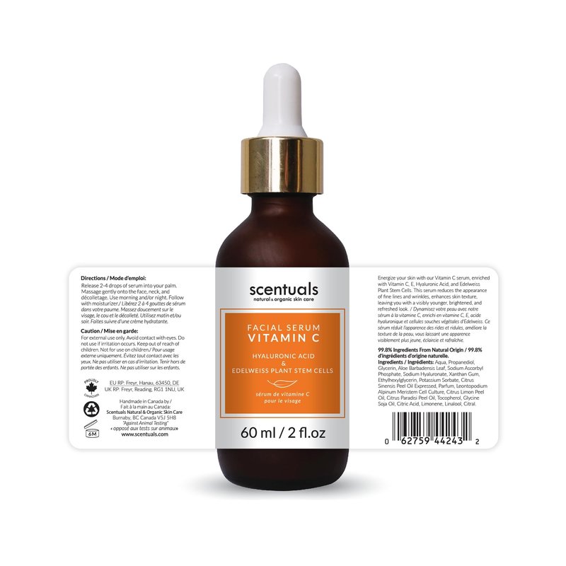 Scentuals Vitamin C Serum for Face, Brightening Serum, Reduce Look of Fine Lines & Wrinkles, Water-Based 2 fl.oz|60 ml