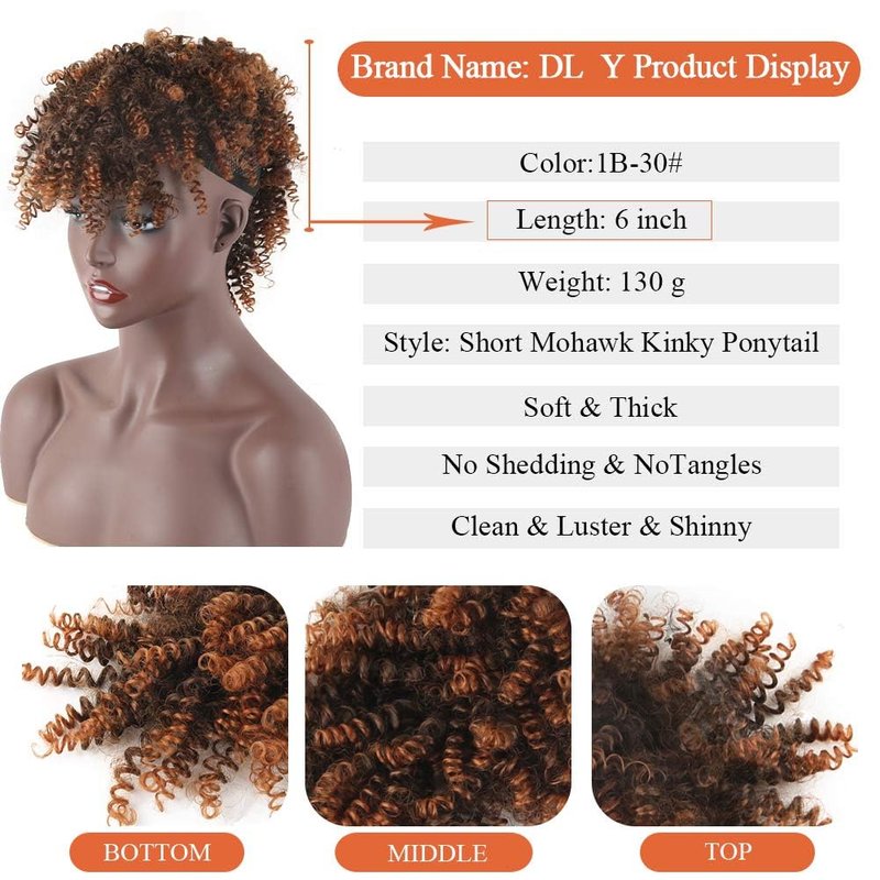 Package: 1 Short Afro kinky Curly Mohawk Ponytail + 1 Pair of Eyelashes