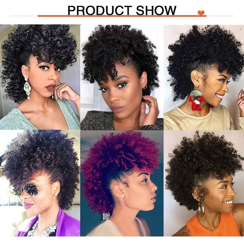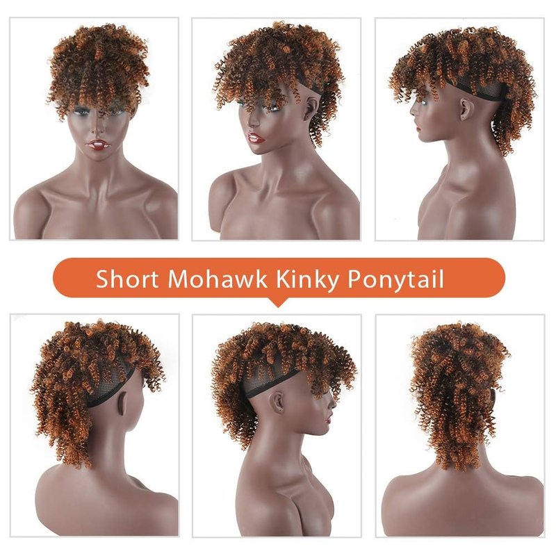- Mohawk Wig Multifunctional: Beauty Afro Ponytail bun with bangs is perfect for versatile styling.The Size is Adjustable, Fit on everyone. It is fashionable no matter Daily Using or Party Wearing.
