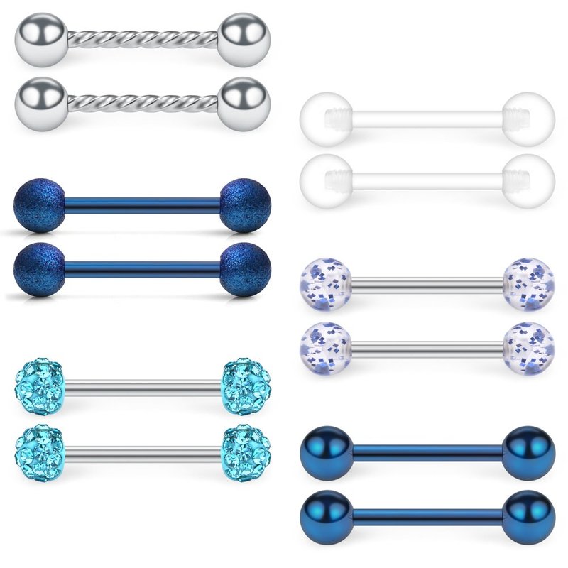 SCERRING 14G Stainless Steel & Clear Acrylic Nipple Ring Tongue Barbell Rings Bars Retainer Body Piercing Jewelry for Women Men 12PCS - Blue