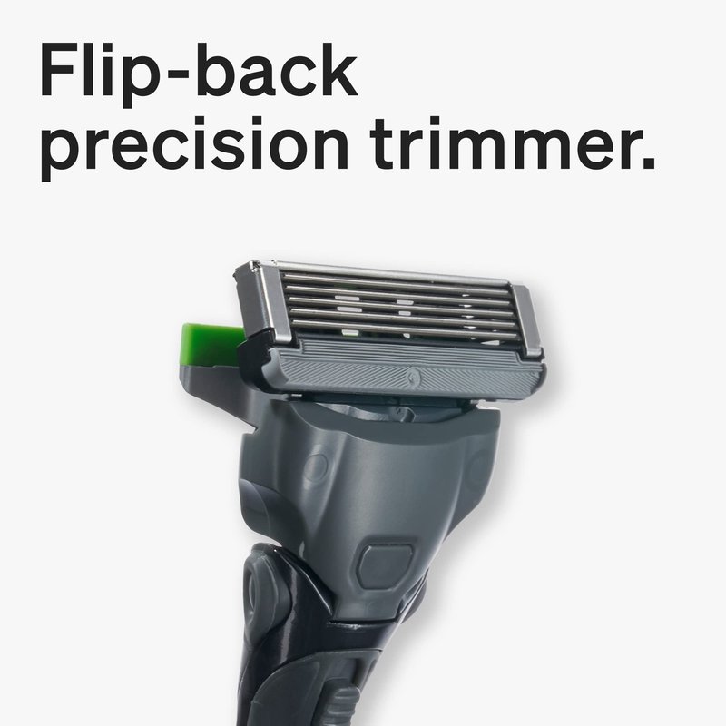 - Flip Trimmer for Hard-to-Reach Areas - Conveniently switch between shaving larger surfaces with all 5 blades, and precision trimming with single edging blade, all with a simple flip of the thumb
