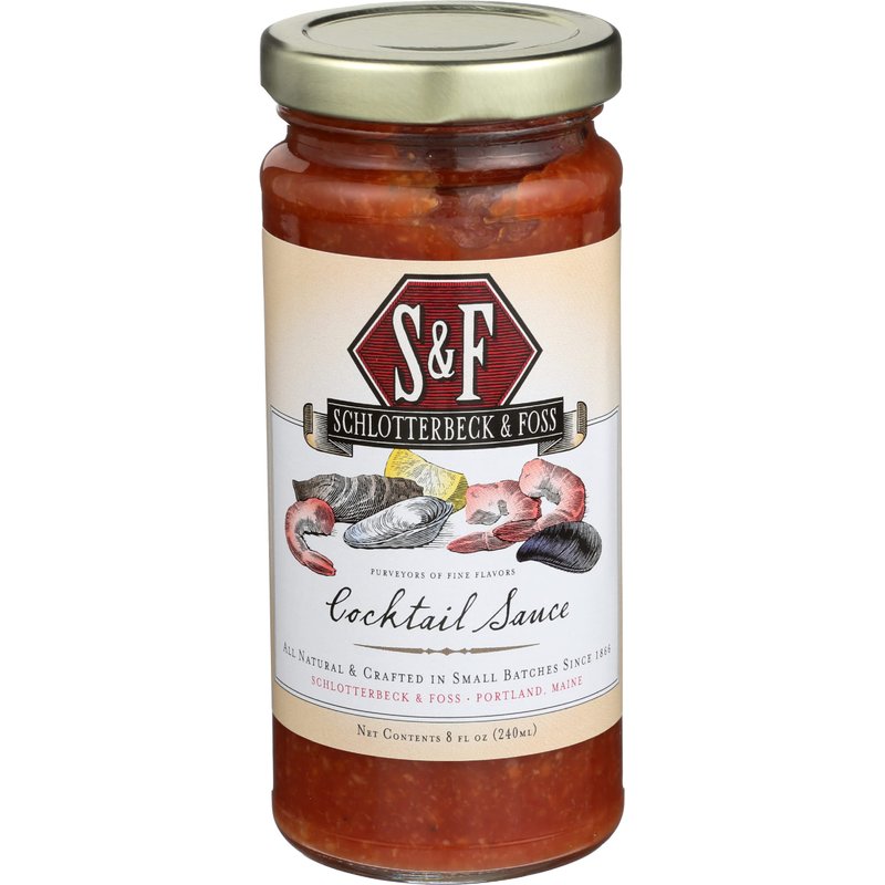 Schlotterbeck & foss cocktail sauce is a lively horseradish sauce that is perfect for shrimp cocktail or other seafood favorites. It is made with all natural ingredients, including horseradish, concentrated tomatoes, cane sugar, distilled vinegar, sea salt, garlic and onion. Each 8 fl oz jar of our sauce is free of gluten and lactose.