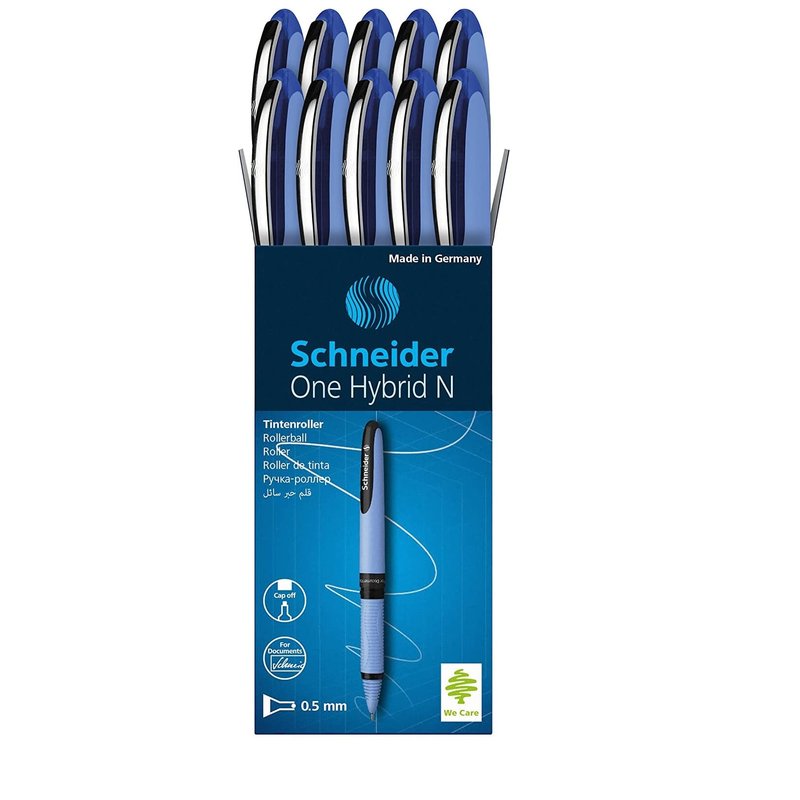 Schneider One Hybrid N Rollerball Pen, 0.5 mm Hybrid Needle Tip, Light Blue Barrel, Blue Ink, Box of 10 Pens (183503)