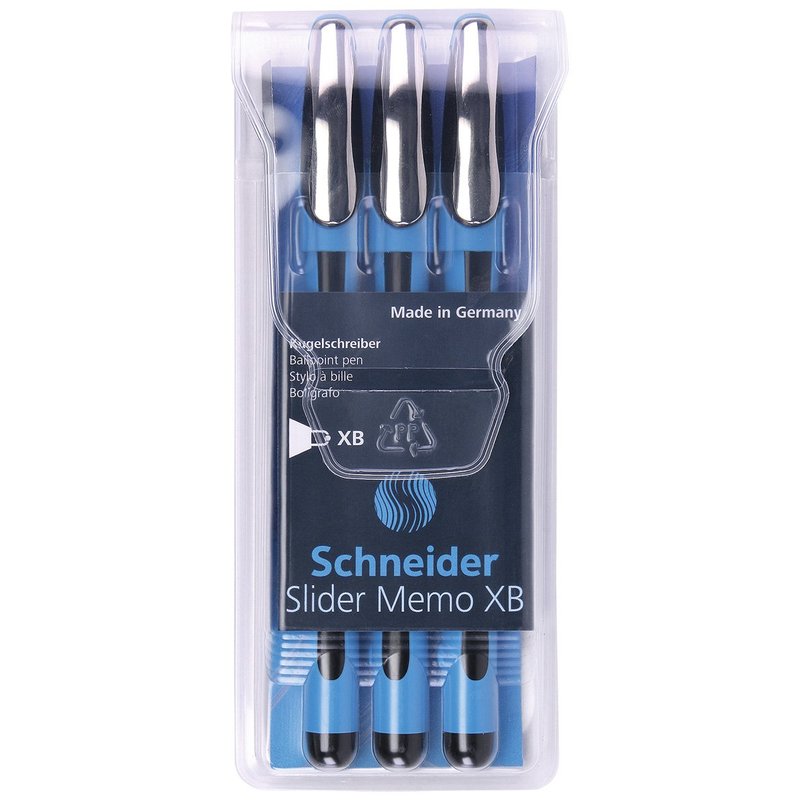 Schneider Slider Memo XB Ballpoint Pen, Black, Pack of 3 Pens (150294)