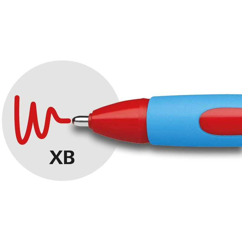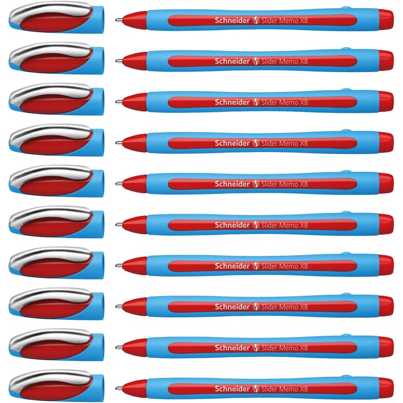 Schneider Slider Memo XB (Extra Broad) Ballpoint Pen, 1.4 mm, Light Blue Barrel, Red Ink, Box of 10 Pens (150202)