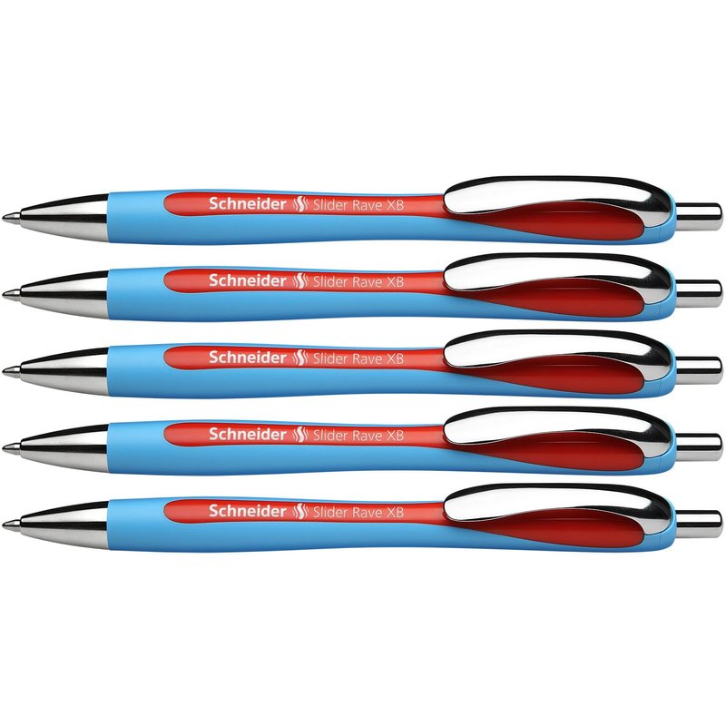 Schneider Slider Rave XB (Extra Broad) Ballpoint Pen, Refillable + Retractable, 1.4 mm, Light Blue Barrel, Red Ink, Box of 5 Pens (132502)