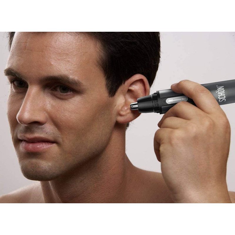 SCHON Stainless Steel Rechargeable 3-in-1 Eyebrow, Ear, Facial, & Nose Hair Trimmer/Clipper for Men&Women | Hair Clippers, Flawless Hair Remover, Male Beard Trimmers, Grooming Kit, Groomer (Silver)
