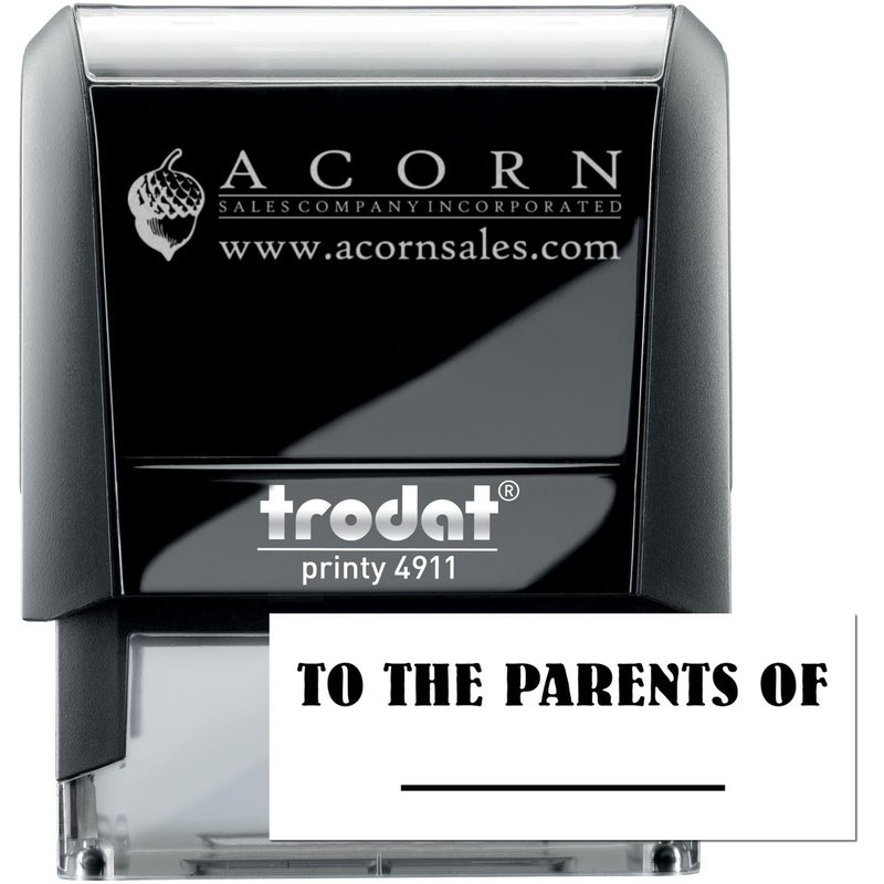 - PRACTICAL AND PROFESSIONAL: This Black Ink Self-Inking to The Parents of Stamp displays the "To the Parents of _____" message in a clear and professional manner. It's a great tool for quick stamping of multiple education, financial, and miscellaneous documents.