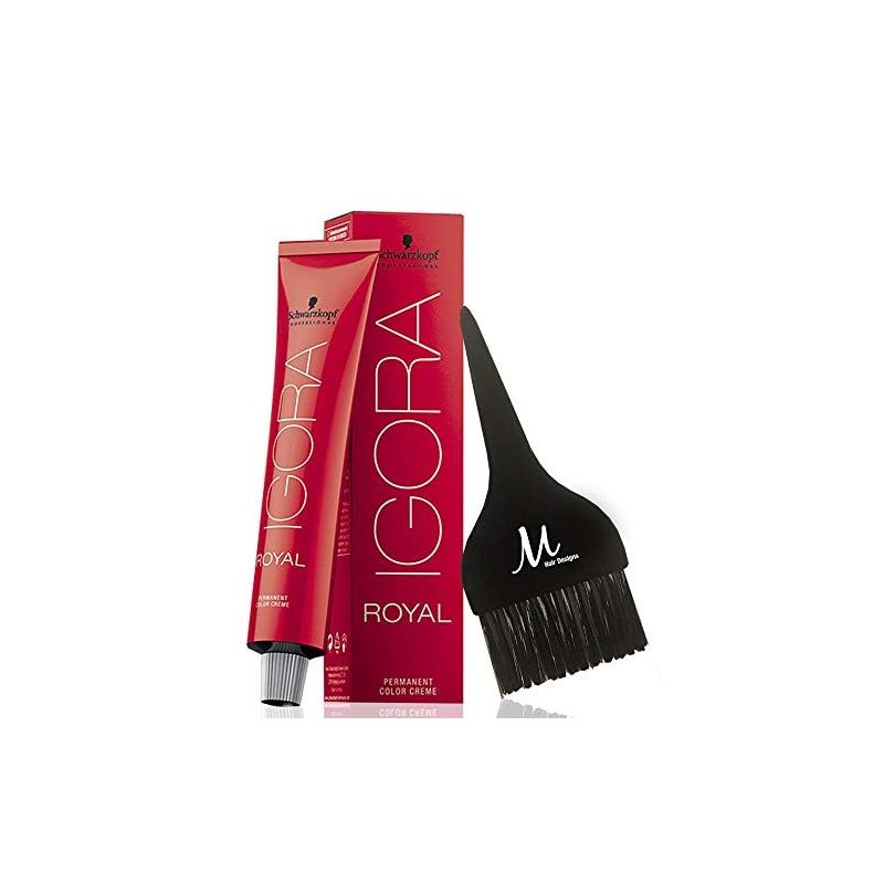 Schwarzkopf Igora Royal 6-00 Dark Blonde Natural Extra Permanent Hair Color and M Hair Designs Tint Brush (Bundle 2 items)