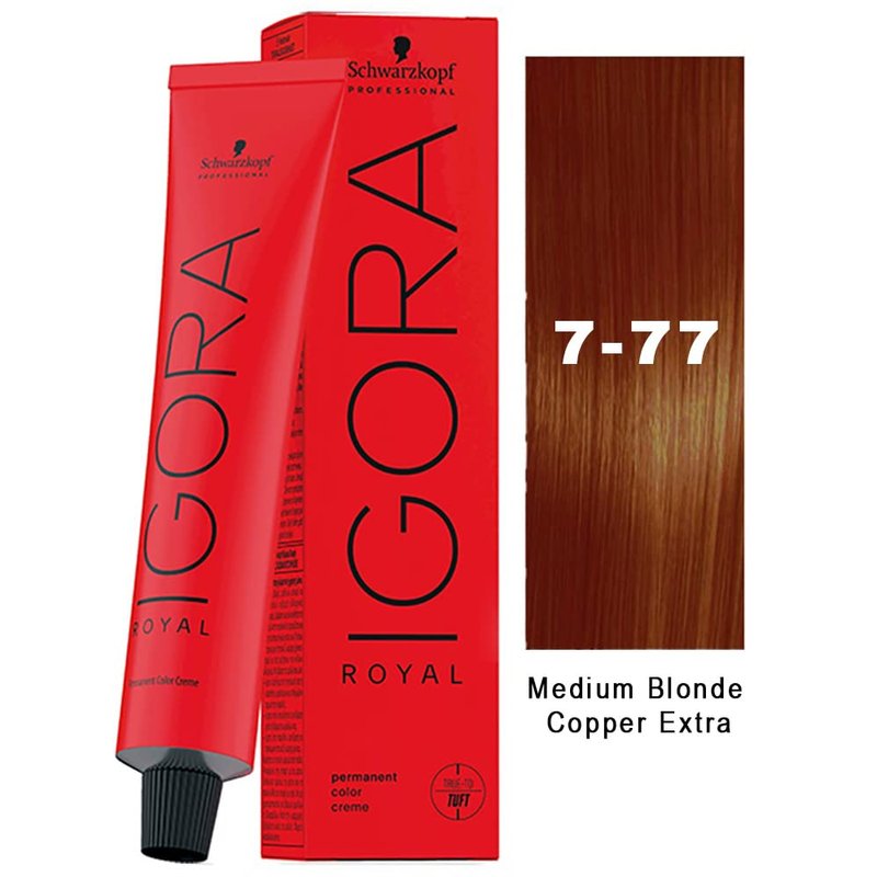Schwarzkopf Igora Royal 7-77 Medium Blonde Copper Extra Permanent Hair Color and M Hair Designs Tint Brush (Bundle 2 items)