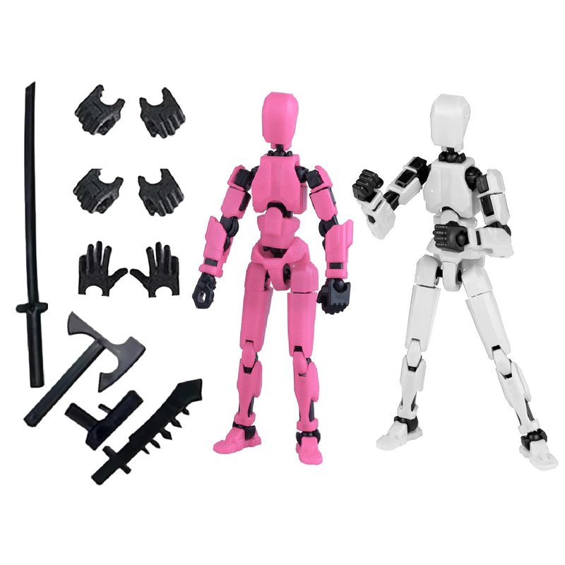 Schythely Titan T13 Action Figures Set -(Assembly Required) Robot Action Figure Fidget Toys for Nova N13 Anime Figures with 3D Lucky Dummy 13 Robot Figures Multi Movable Joints Gifts (Pink+White)