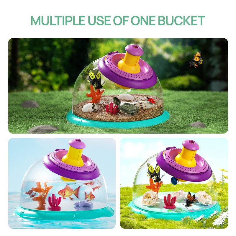 - ⭐ MULTIFUNCTIONAL DISCOVERY KIT: Summer nature science is a kid's favorite! The bug kit has multiple types of exploration, allowing your little adventurer to collect and observe butterflies or plants in the park; keep critter at home and watch them grow; or use it as a fish tank to watch goldfish and turtles play in the water. Perfect critter cage for explorer!