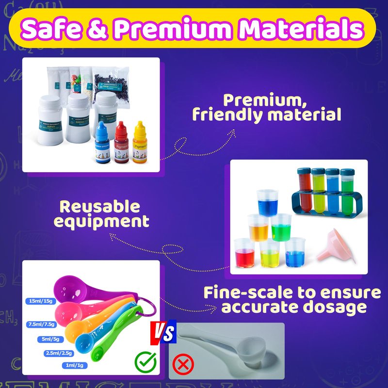 - 【Easy-to-Follow Instructions】Professional scientific instructions with clear illustrations ensure that kids can follow along and complete each experiment with minimal supervision, building confidence and independence. Our instructions clearly show the steps of 50 experiments, the scientific principles, and the usage and dosage of each step.