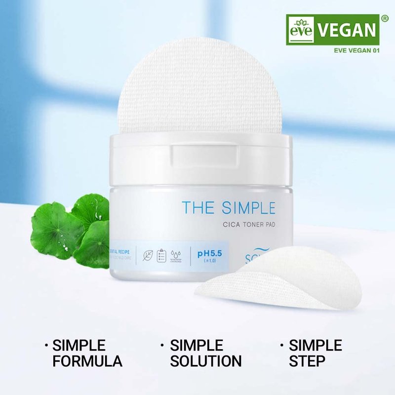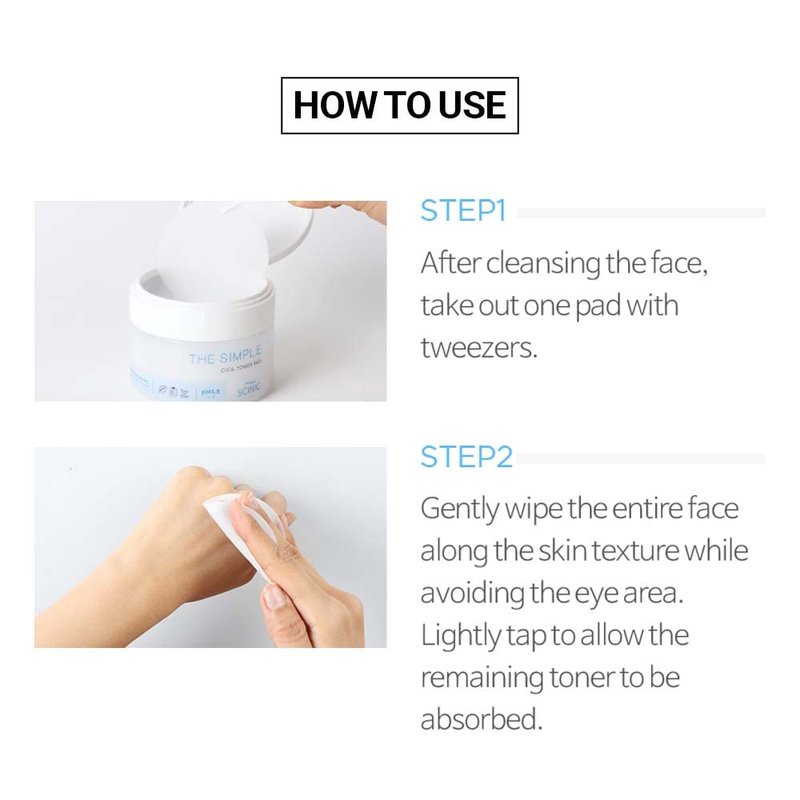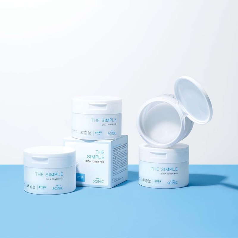 SCINIC The Simple Cica Toner Pad 60 Pcs | Vegan-certified Cotton Fabric | Mild Peeling Without Irritation | Gentle Ph 5.5 PHA Peeing | 100% Vegan | K-beauty