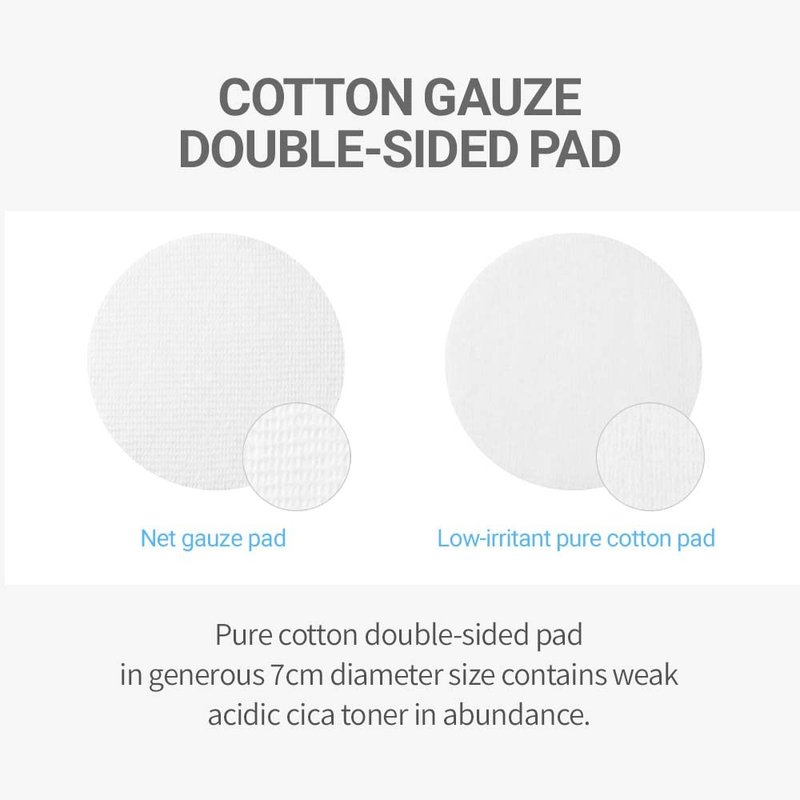 - COTTON GAUZE DOUBLE-SIDED PAD : Big-sized, 7cm diameter pure cotton double pad is soaked with weakly acidic cica toner.