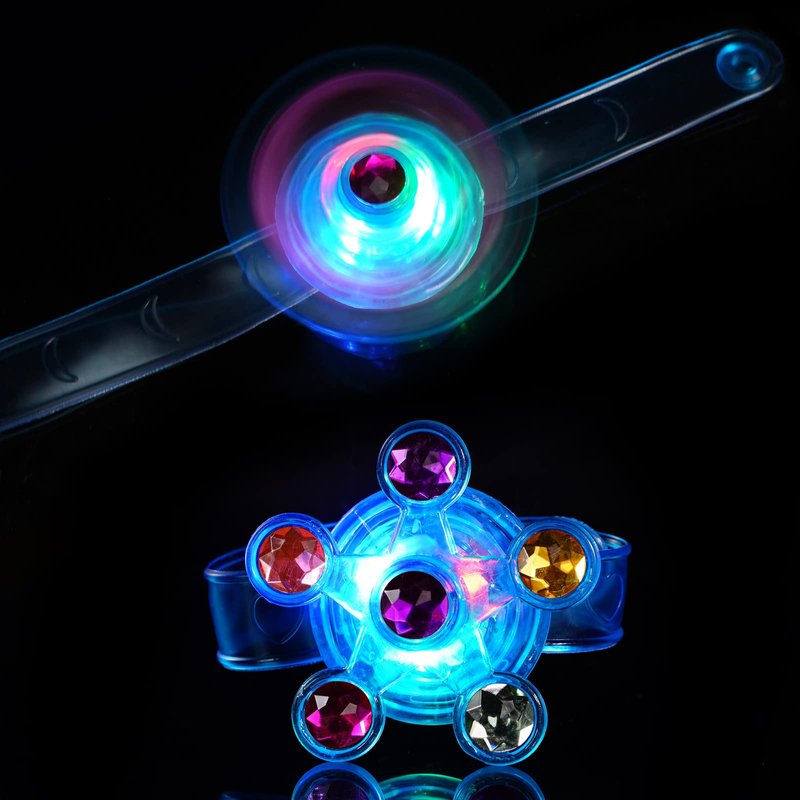 - These party favors for kids goodie bags comes with 24 pack led light up bracelet, all these party favors are multiple random colors and various styles.It is a combination of bracelet,led lights and fidget spinner toy all of which are loved by kids. Fun to play and fiddle it.