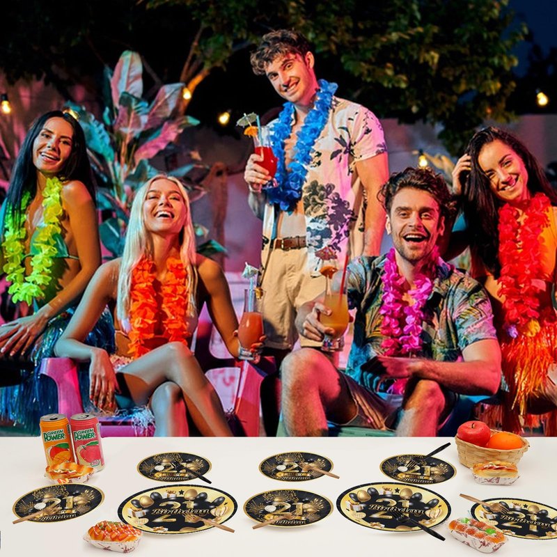 - HAPPY 21st BIRTHDAY PARTY SUPPLIES - This Black and Gold birthday party supplies includes: 24 x 9" plates, 24 x 7" plates, 24 x forks, 24 x 6.5" napkins. There are a total of 96pcs in this set, which will add fun to 21st birthday party.