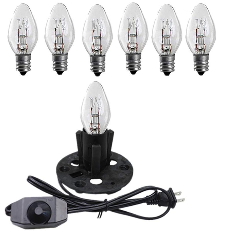 SCOMX Himalayan Salt Lamp Cord, Dimmer Switch,Christmas Bulb,Salt Lamp Cord with Dimmer Control and Base Assembly,5 Feet,E12 Base for Himalayan Salt Lampsand with six Free 8W Bulbs for Salt Lamp (1p)