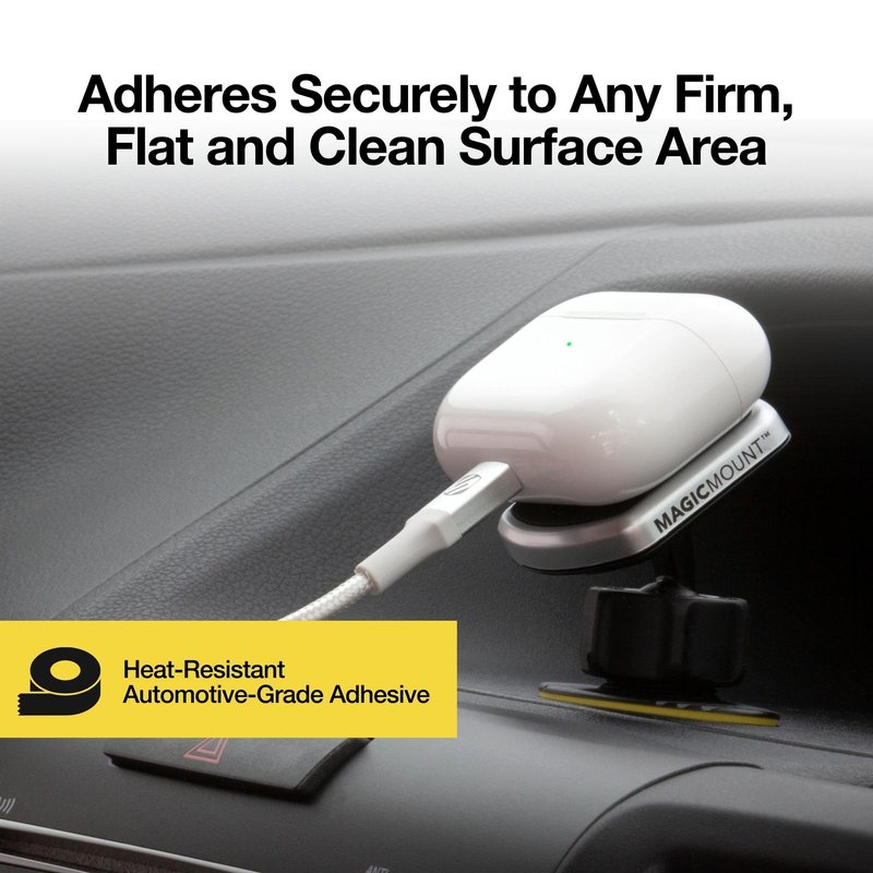 - DASHBOARD PHONE MOUNT - Swiftly secure any mobile device in your car to a dashboard or any firm & flat surface. With a heat-resistant automotive-grade base, this magnetic phone mount will stick to any surface and will not fall off while driving.