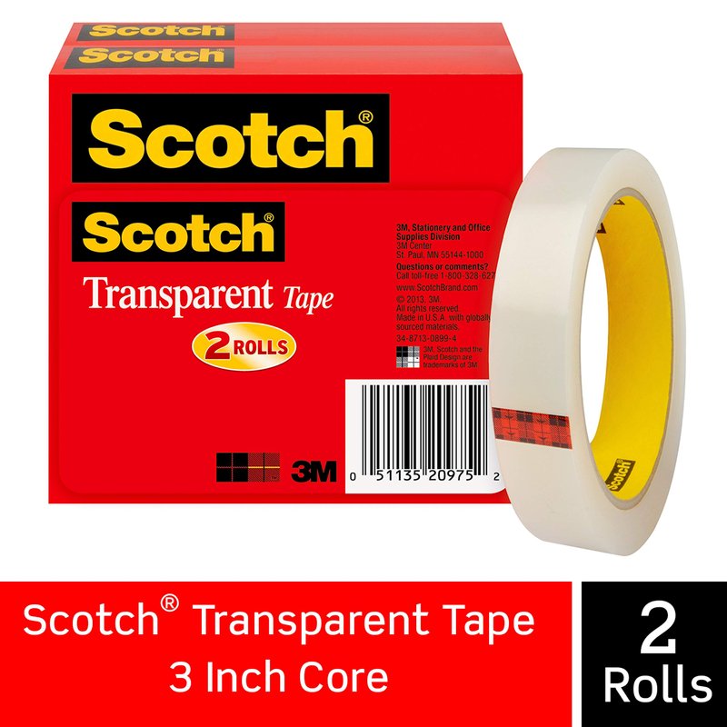 Scotch Brand Transparent Tape, Engineered for Office and Home Use, 3/4 x 2592 Inches, 3 Inch Core, Boxed, 2 Rolls (600-2P34-72),Clear