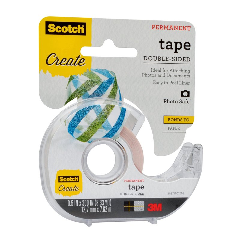 Scotch Create Double-Sided Permanent Tape, 1 Dispenser, 1/2 in x 300 in, Clear, Strong Double Sided Tape for Crafts