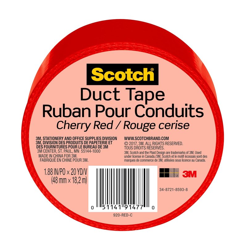 Scotch Duct Tape, 1.88 in x 20 yd, Cherry Red, 1 Roll (920-RED-C)