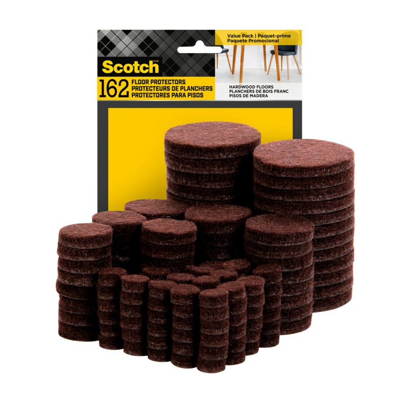 Scotch Felt Pads 162 PCS Beige, Felt Furniture Pads for Protecting Hardwood Floors, Round, Assorted Sizes Value Pack, Self-Stick design, Protecting from nicks, dents and scratches (SP847-NA)