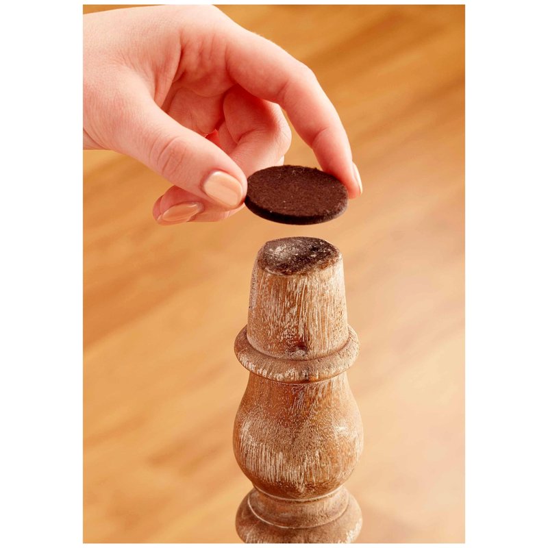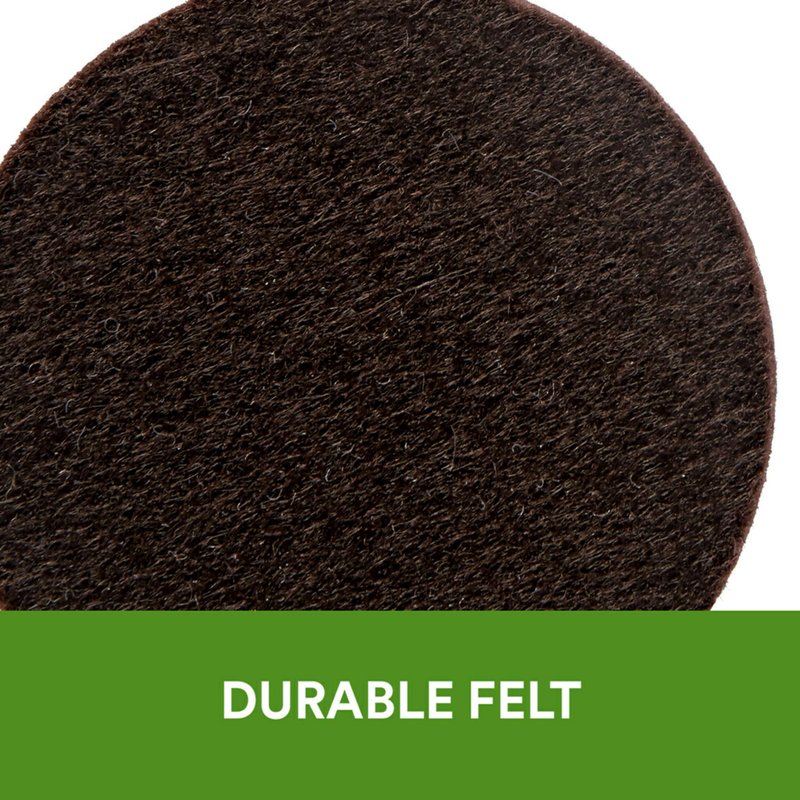 - INCLUDES: 162 furniture pads -- (90) 3/8 inch round pads, (24) 3/4 inch round pads, (24) 1 inch round pads, (24) 1.5 inch round felt pads, brown color