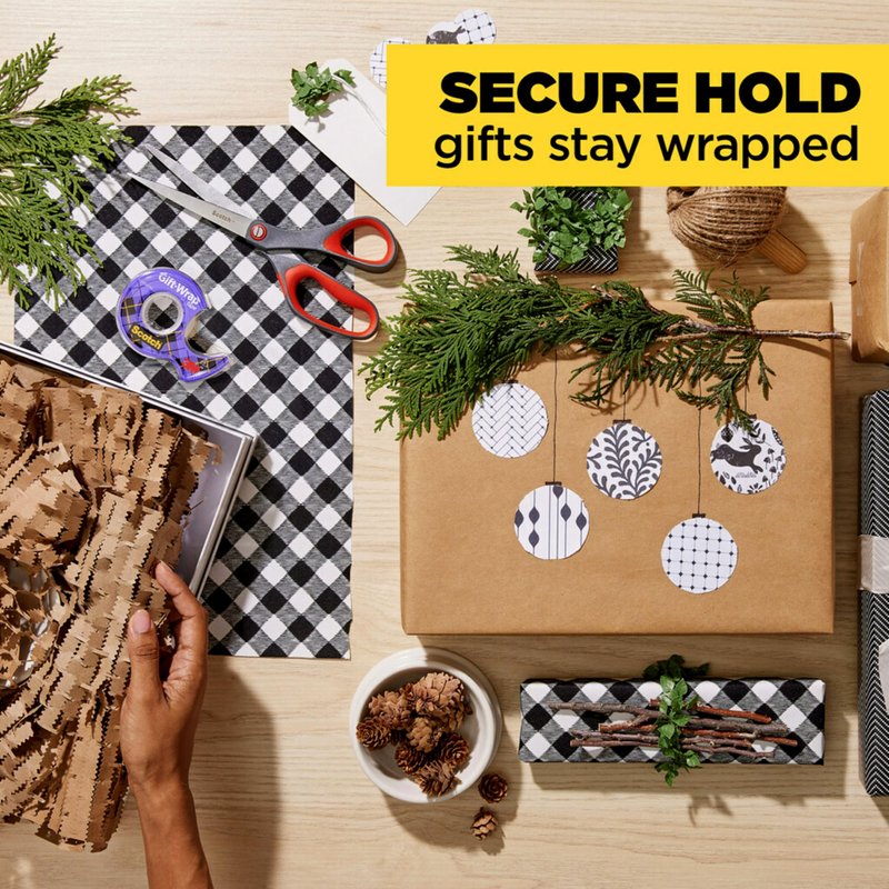 - GIFT TAPE WITH A SECURE, STRONG HOLD: 2 rolls of Scotch Gift Wrap Tape with tape dispensers gives a strong, secure hold to seal gift bags and keeps presents securely wrapped
