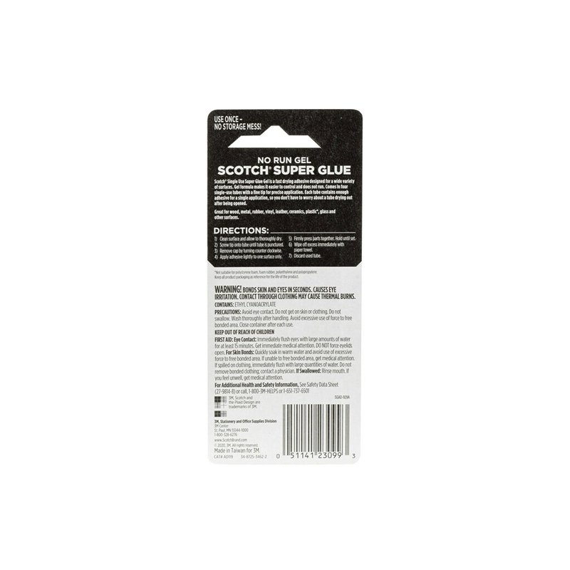 Scotch Super Glue Gel, 4-Pack of Single-Use Tubes, .017 oz each, Fast Drying, No Run Gel Formula (AD119)