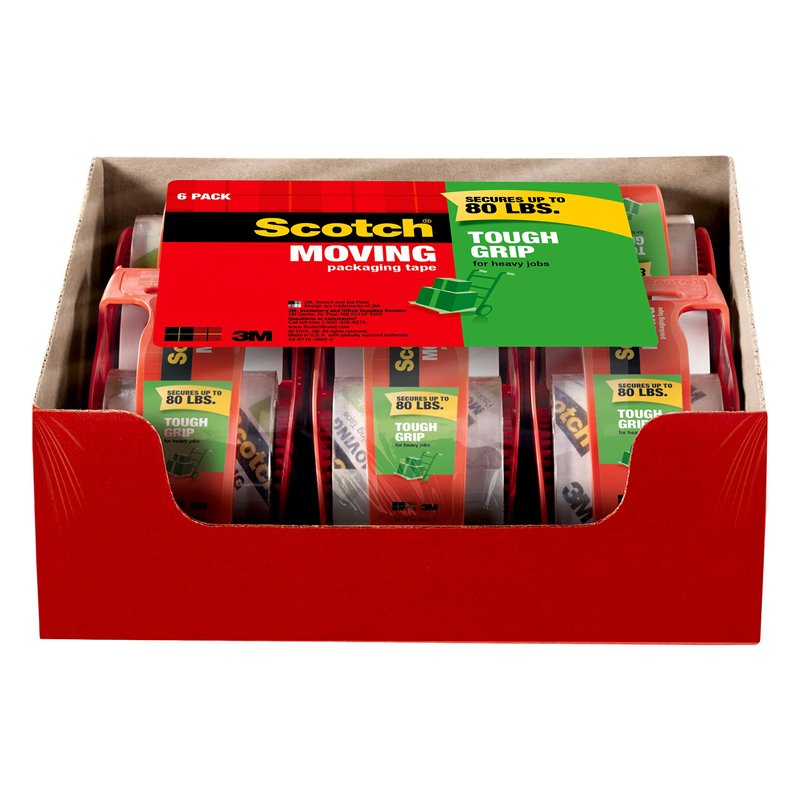 - MOVING TAPE: 6 rolls of Scotch Tough Grip Moving Packing Tape in dispensers for convenient application offer excellent holding power for your packing and moving needs