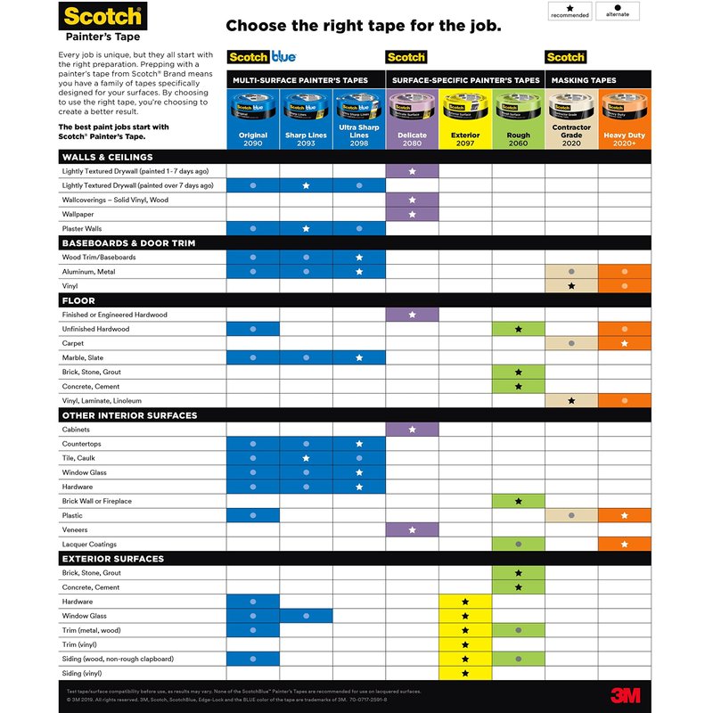 - CONQUER MOST SURFACES: Specially designed blue tape for smooth or lightly textured walls, trim, baseboards, tile and glass
