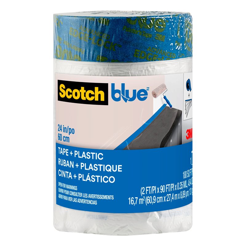 ScotchBlue Pre Plastic Painters Tape, 24 in x 30yd, Tape & Masking Film Combined in One Product, Static Cling to Stay in One Place, No Residue Masking Tape, Film Unfolds to 24" Wide (PT2093EL-24)