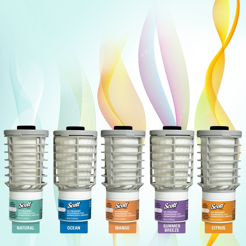 - The Scott Essential Air Freshener Refill from Kimberly-Clark (6 cartridges per case), in fresh Summer Fresh Scent, offers an economical, effective odor neutralizer, designed to work with an easy-to-use wall mounted dispenser
