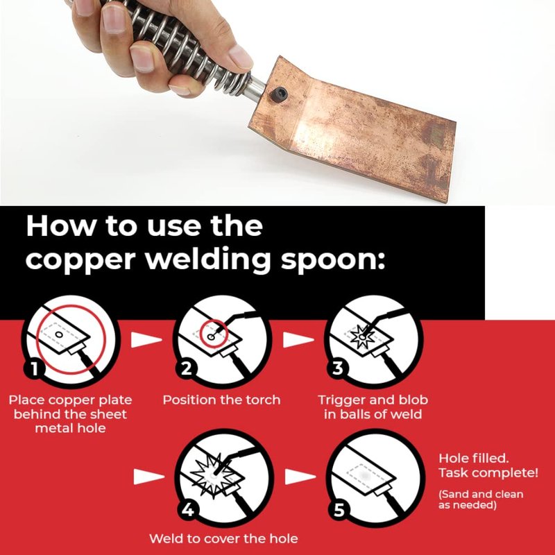 - {Plug Weld Sheet Metal Holes In Seconds}------- This Welding Spoon Copper creates a precise spot weld without cutting scrap metal plugs