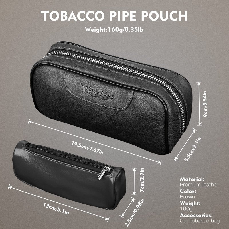 - The tobacco pipe bag outskirts is made of Leather,the inner cloth and the built-in tobacco bags are made with PU leather,fashionable atmosphere.