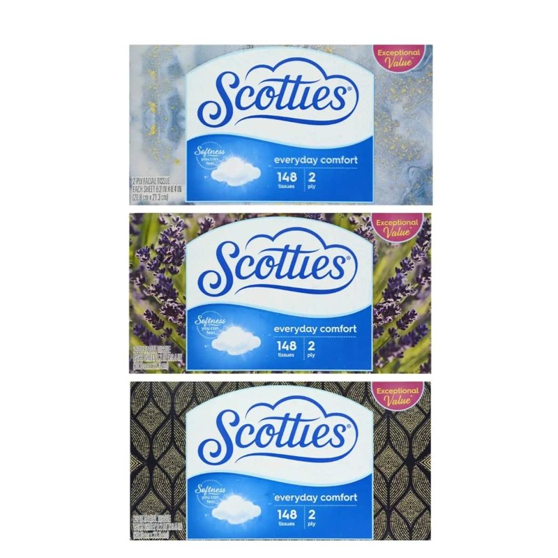 Scotties 2-Ply Facial Tissues, 148 Sheets Per Box 3-Pack (Box Design May Vary)