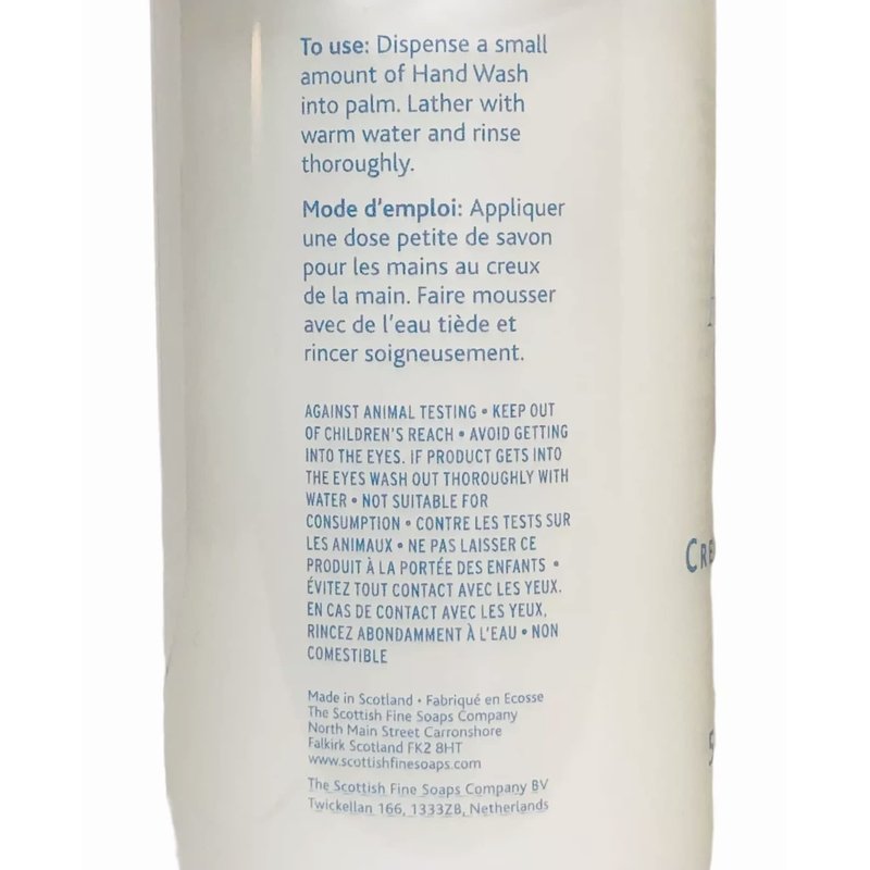 Scottish Fine Soaps Cotton Fresh Hand Wash 17.5 Fl.Oz. From Scotland. Glycerin based luxuriously creamy gel hand wash. Leaves Hands smooth, supple and delicately scented. Use in the bathroom or kitchen areas with convenient pump format. Paraben free.