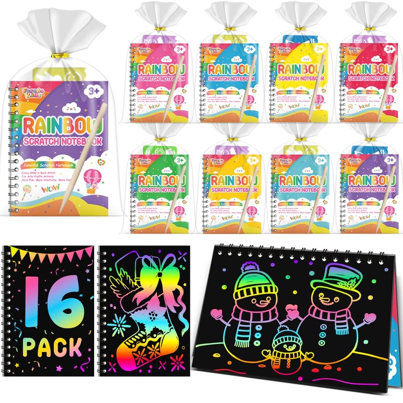 Scratch Art Party Favors for Kids: 16 Pack Rainbow Scratch Notebook Kids Art Supplies for Girls Boys Kids Birthday Party Favors Valentines Gifts Classroom Prizes Goodie Bag Stuffers