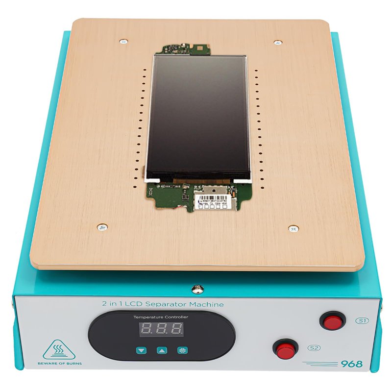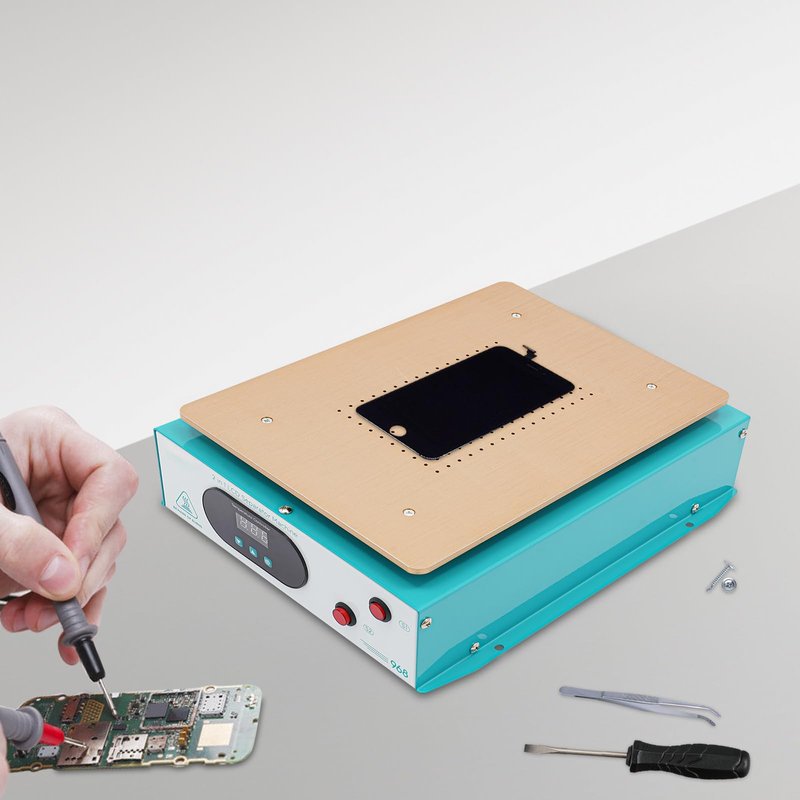 Description When a mobile phone screen suffers an accidental impact that cracks or breaks the glass lens on the surface, the LCD inside is often still intact. In this case, we cleverly use an advanced screen separator to accurately peel off the damaged screens, which undoubtedly shows significant advantages in terms of cost and time savings. The core technology of this product is a high-efficiency PTC heating element for fast and even heat transfer. The built-in vacuum pump provides powerful suction to ensure efficient screen separation. Application It is a machine for repairing damaged screens by separating the phone screen from the lens. It is suitable for all brands of mobile phones with a screen size of fewer than 14 inches. It is suitable for both mobile phone repair shops and home use. Specifications Material: Metal, Aluminium Model: UY-968 Surface Treatment: Anodic Oxidation Color: As Shown in the Figure Assembly Required: No Style: Modern Plug Type: US Standard Rated Power: 600W Voltage: 110-250V Display Type: LED Heat Generation Mode: PTC Heating Element Applicable Mobile Phone Screen Size: ≤ 14-inch Temperature Range: 0°C-130°C/32°F-266°F Power Cord Length: 1.2m/3.94ft Heating Table Size: 31*22cm/12.2*8.67in Machine Size: 34*26.8*10.2cm/13.39*10.56*4.02in Gross Weight: 4.6kg/10.14lbs Net Weight: 4.2kg/9.26lbs Package Size: 40.5*31*17.5cm/15.94*12.2*6.89in Package Included 1* Screen Separator Machine 1* Silicone Pad 1* Power Cord 1* Chinese&English Manual Notes 1.Please read the instructions carefully and take note of the safety precautions contained therein. 2.Please allow the slight color difference caused by the shooting light and 1-3cm error due to manual measurement, and make sure you do not mind before ordering.